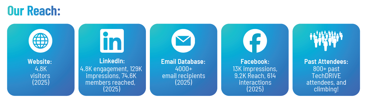 TechDRIVE offers a blend of information, networking, and immersive experiences by selecting unique venues that transform each event into a memorable occasion. TechDRIVE is more than an event; it's a platform where industry leaders converge to shape tomorrow, making it an ideal partnership opportunity to position your business at the forefront of innovation. With rapid changes in industry, TechDRIVE is both information sharing and educational, allowing you to target and elevate your brand.